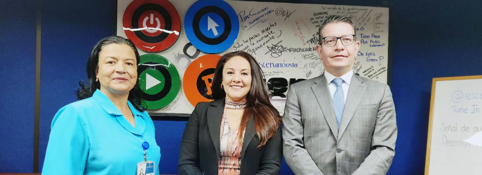 Los docentes Marcela Magallanes Montoya, Cristhian Sánchez Giraldo y Edwin Jaime Ruiz , de las facul...