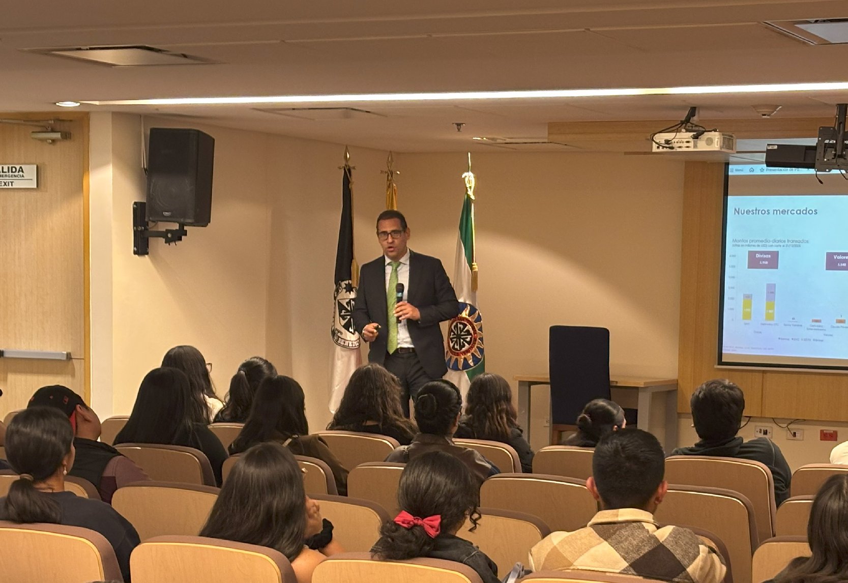 Igualmente, se realizó una conferencia a cargo del Vicepresidente del Autorregulador de Valores de Colombia - AMV, el Doctor Fabián Reina Ramírez, quien a través de su disertación ofreció su experiencia sobre los mercados de valores, riesgos, las funciones de supervisión y las conductas de mercado, espacio también abierto a los estudiantes de los programas de Contaduría Pública y de Finanzas de nuestra Facultad.