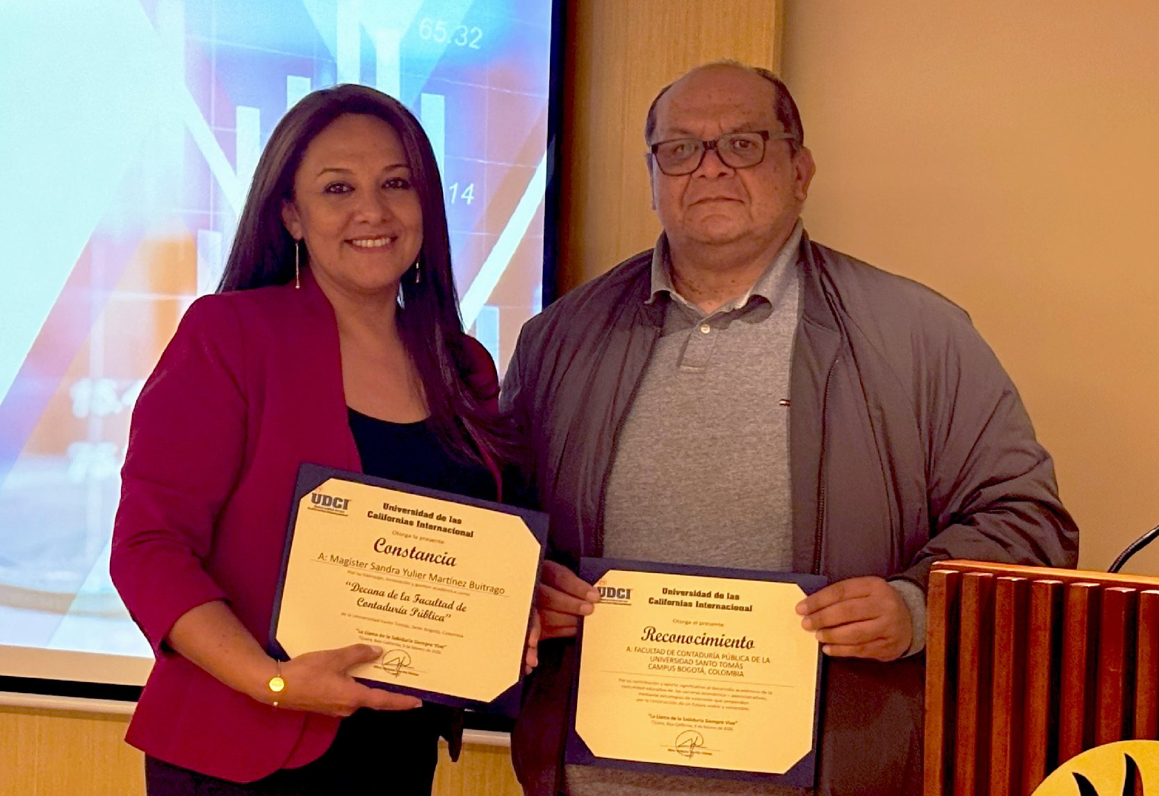 En el marco de la visita, la Facultad de Contaduría Pública recibió un reconocimiento por parte de la UDCI: